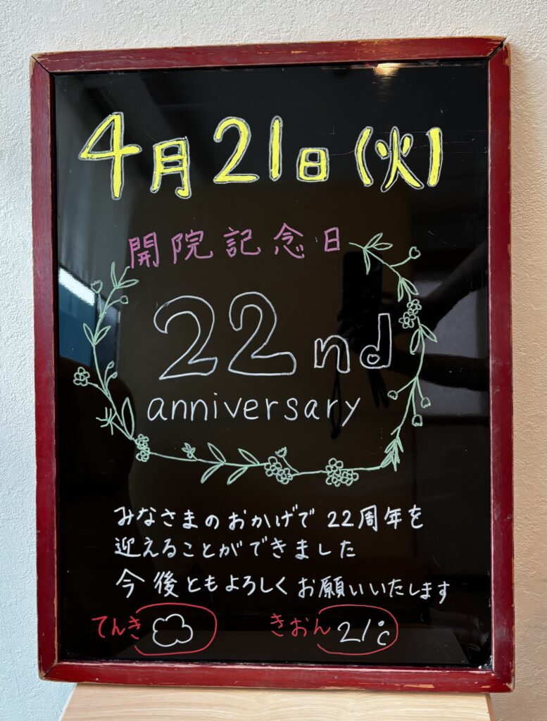 本日、田辺眼科クリニックは開院22周年の節目を迎えました。 長きにわたり支えてくださった地域の皆さま、そして共に歩んでくれる仲間に心より感謝申し上げます。