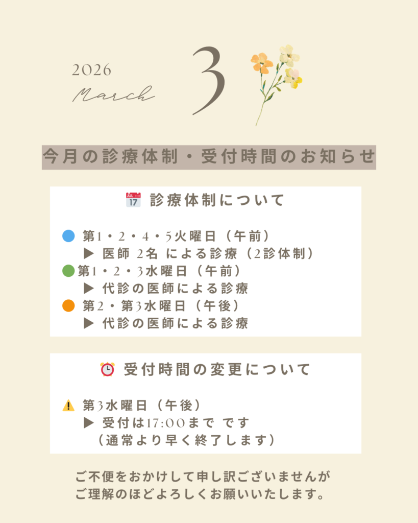 3月の診療体制・受付時間のお知らせ