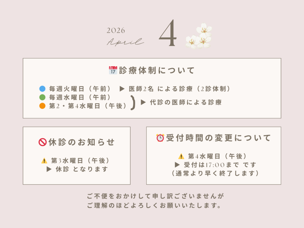 4月の診療体制・受付時間のお知らせ